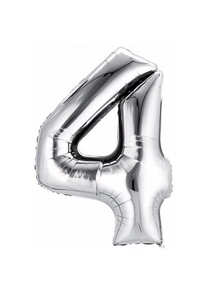 Striborný fóliový balón v tvare čísla 4.