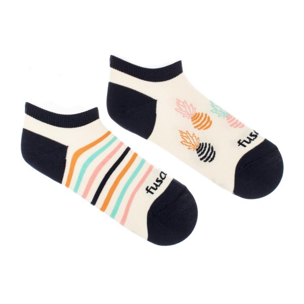 Členkové ponožky Fusakle ideálne na teplé dni, na šport, do tenisiek alebo na doplnenie akéhokoľvek outfitu. Fusakle je značka originálnych dizajnových ponožiek navrhovaná a vyrábaná s láskou šikovnými a milými ľuďmi na Slovensku a v Česku. Fusakle sú pre všetkých, ktorí sa chcú baviť životom, majú chuť pomáhať druhým a odvahu byť iní, no stále samými sebou.