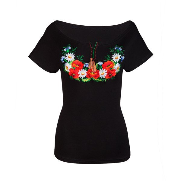 Čierna vyšívaná blúzka s krásnou farebnou kombináciou. Bohatá výšivka na výstrihu. Kvetinové prvky vyšívané niťou dodávajú blúzke ešte väčšiu eleganciu. Model je vyrobený z materiálu v zložení 70% viskóza, 20% bavlna a 10% elastan. Vďaka obsahu elastanu sa blúzka mierne naťahuje. Blúzka sa hodí k elegantným aj ležérnym štýlom. Môžete ju nosiť do kancelárie aj na víkendový výlet.
