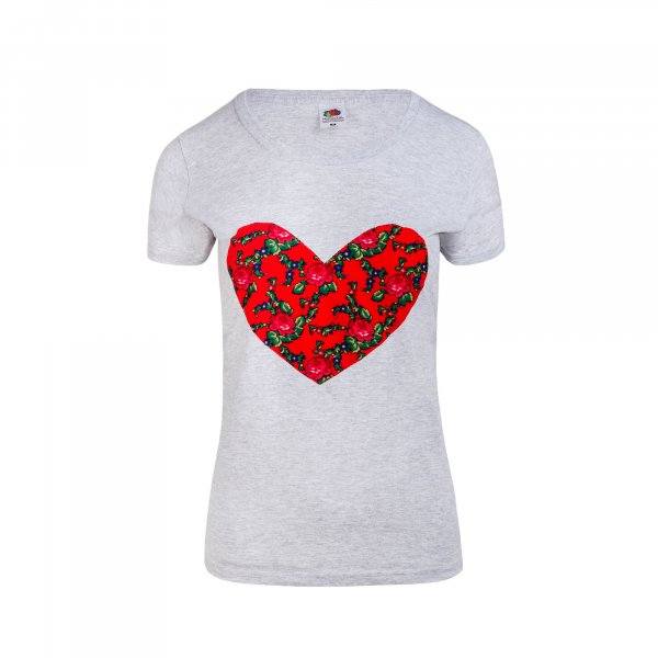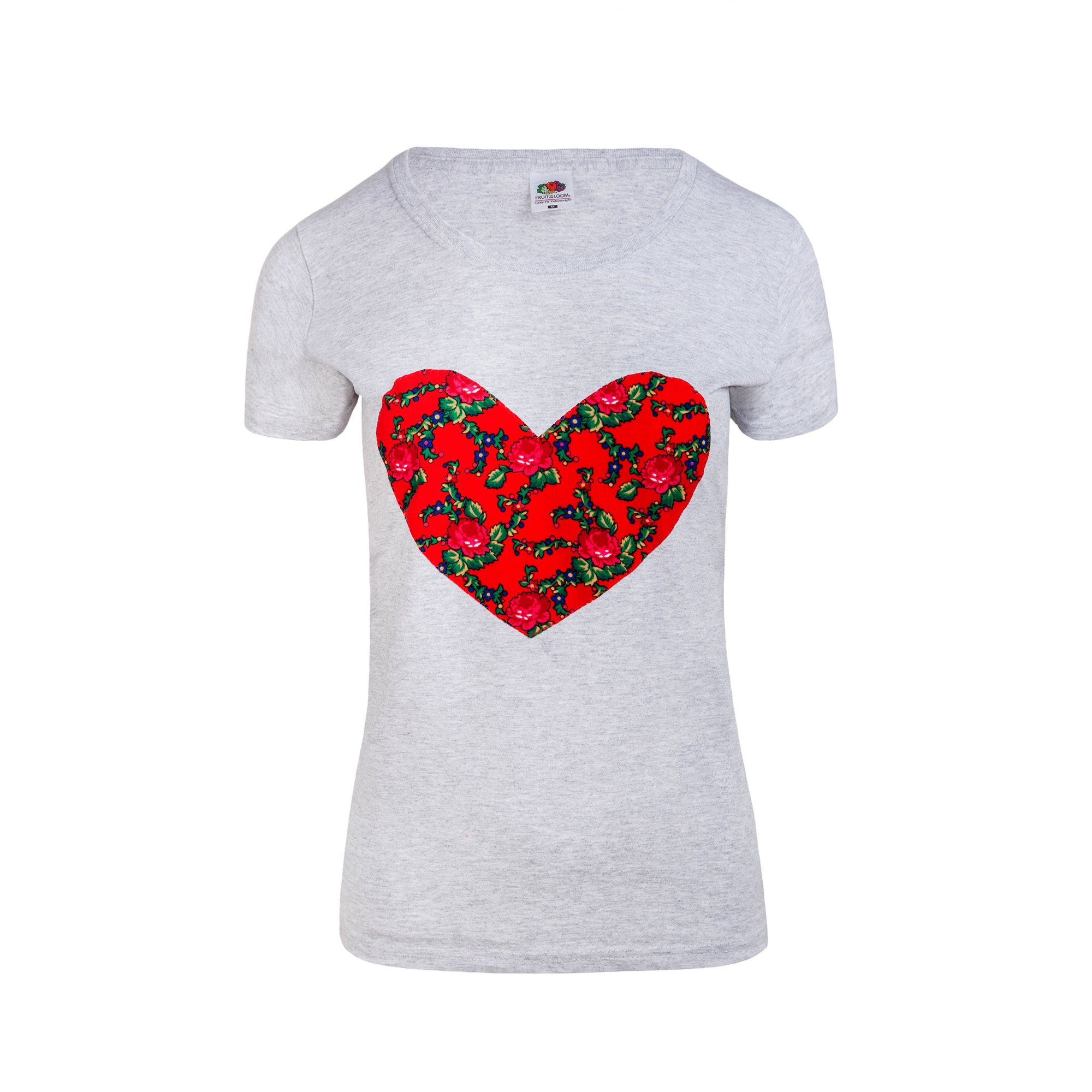 Šedé dámske tričko s krátkym rukávom so srdiečkom vyplneným krásnym vzorom kvetov. Blúzka sa hodí k elegantným aj ležérnym štýlom. Môžete ju nosiť do kancelárie aj na víkendový výlet.