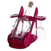 Drevená darčeková súprava obsahuje fľašku na víno s objemom 0,5 L a 2 poháre.
