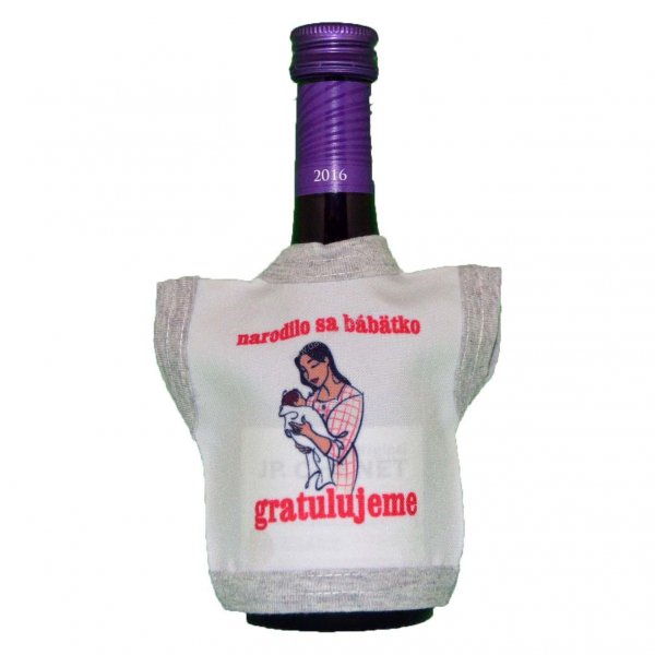 Darčekové víno v tričku na oslavu narodenia bábätka.