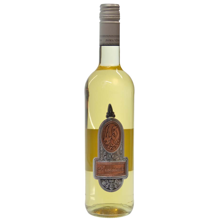 Darčekové víno s cínovou etiketou k 45. narodeninám