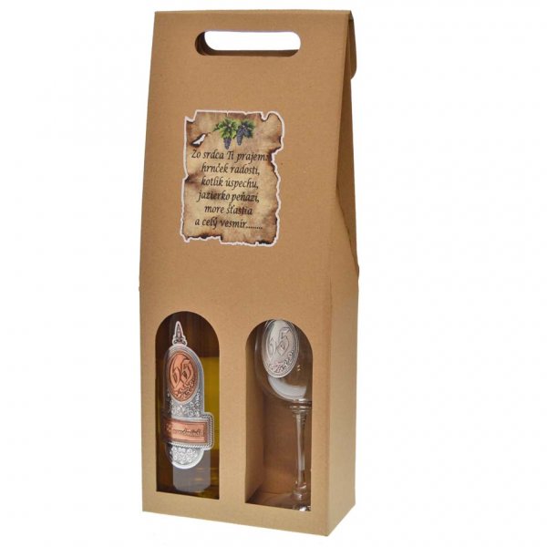 Darčekový set biele víno + pohár s pečaťou k 65. narodeninám