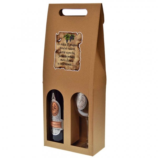 Darčekový set červené víno + pohár s pečaťou k 65. narodeninám
