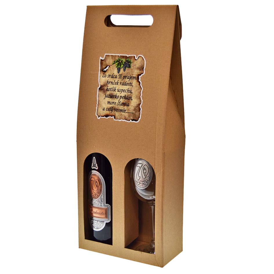Darčekový set červené víno + pohár s pečaťou k 70. narodeninám