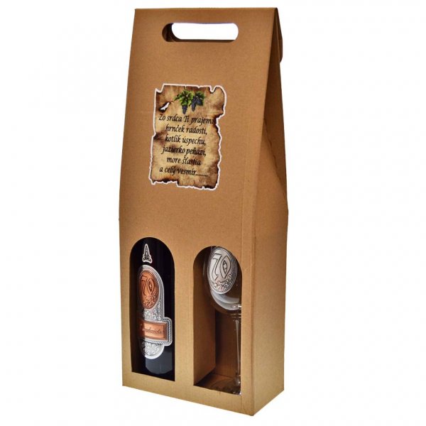 Darčekový set víno a pohár k 70. narodeninám s krásnym veršom, ktorý ulahodí každej duši. 70 máme len raz v živote preto by darček na 70 mal zanechať pamiatku. Darčekové víno + pohár v darčekovej krabici s veršom: