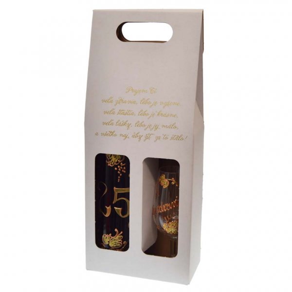 Darčekový set víno a pohár k 25. narodeninám s krásnym veršom, ktorý ulahodí každej duši. 25 máme len raz v živote preto by darček na 25 mal zanechať pamiatku. Originálny darček pre každého jubilanta.