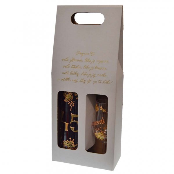 Darčekový set víno a pohár k 45. narodeninám s krásnym veršom, ktorý ulahodí každej duši. 45 máme len raz v živote preto by darček na 45 mal zanechať pamiatku. Originálny darček pre každého jubilanta.