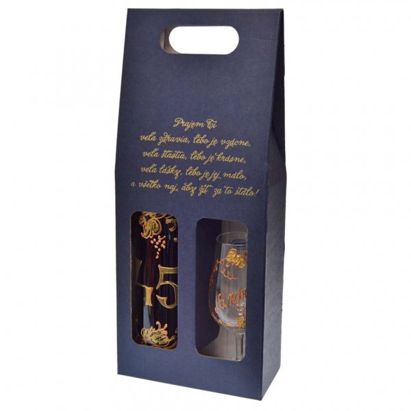 Darčekový set víno a pohár k 45. narodeninám s krásnym veršom, ktorý ulahodí každej duši. 45 máme len raz v živote preto by darček na 45 mal zanechať pamiatku. Originálny darček pre každého jubilanta.
