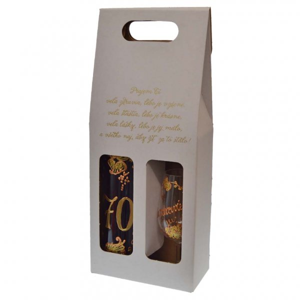 Darčekový set víno a pohár k 70. narodeninám s krásnym veršom, ktorý ulahodí každej duši. 70 máme len raz v živote preto by darček na 70 mal zanechať pamiatku. Originálny darček pre každého jubilanta.