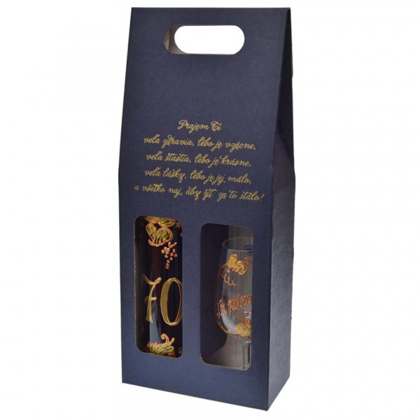 Darčekový set víno a pohár k 70. narodeninám s krásnym veršom, ktorý ulahodí každej duši. 70 máme len raz v živote preto by darček na 70 mal zanechať pamiatku. Originálny darček pre každého jubilanta.