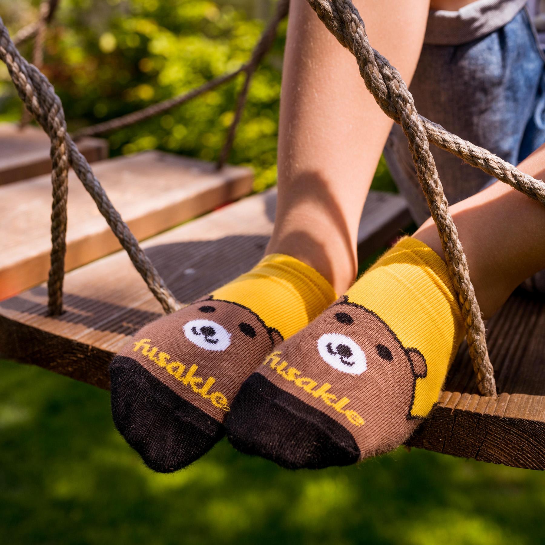 Detské členkové ponožky Fusakle ideálne na teplé dni, na šport, do tenisiek alebo na doplnenie akéhokoľvek outfitu. Fusakle je značka originálnych dizajnových ponožiek navrhovaná a vyrábaná s láskou šikovnými a milými ľuďmi na Slovensku a v Česku. Fusakle sú pre všetkých, ktorí sa chcú baviť životom, majú chuť pomáhať druhým a odvahu byť iní, no stále samými sebou.