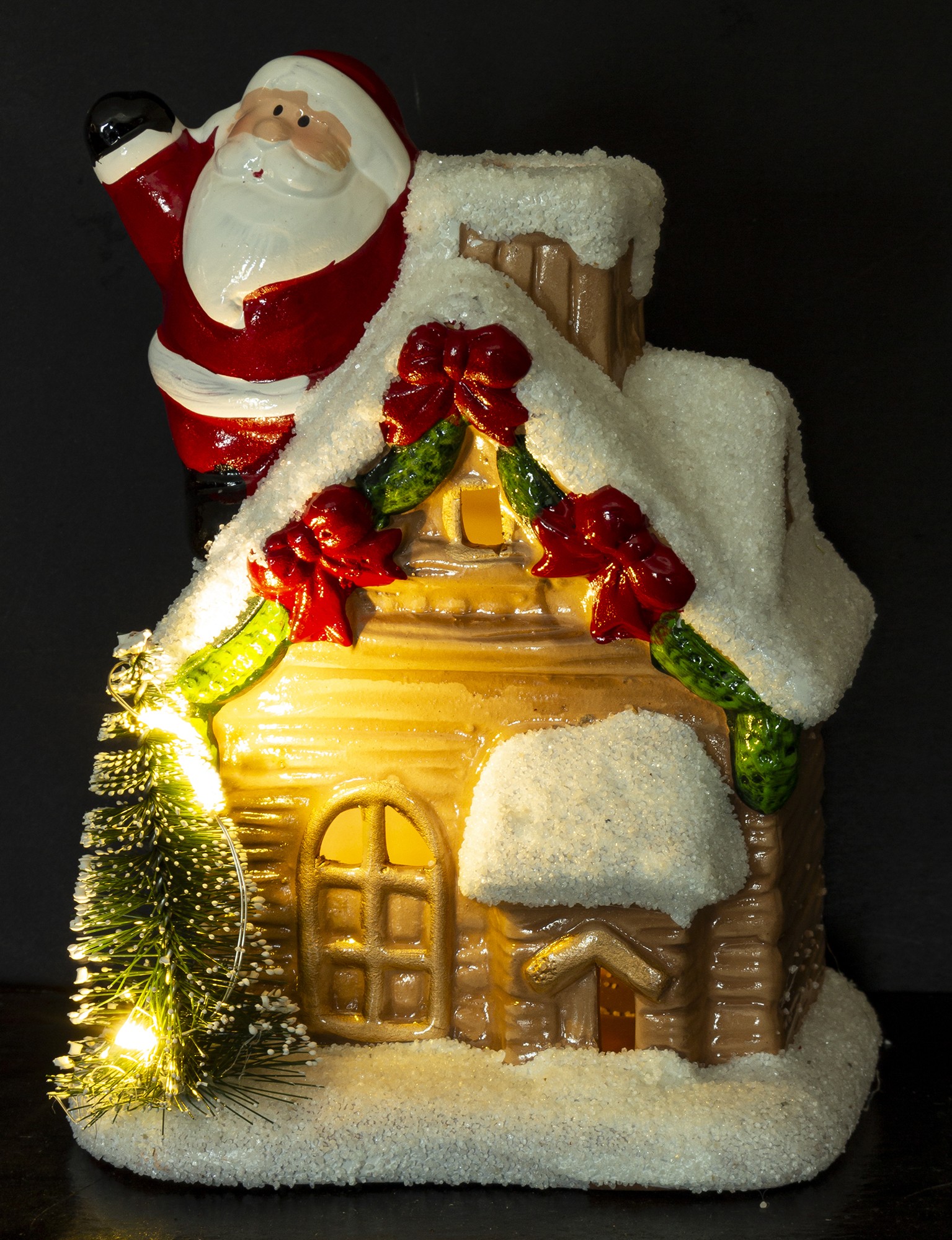 Zažiarte si tento rok sviatočnú atmosféru ako nikdy predtým s našou exkluzívnou vianočnou dekoráciou - Led Domček s Mikulášom! Táto jedinečná dekorácia je vyrobená z keramiky a je navrhnutá s ohľadom na detail. Domček má rozmery 16 x 11 x 10 cm, takže sa ľahko zmestí do akejkoľvek vianočnej dekorácie alebo na poličku. Tento domček je však viac ako len pekný doplnok. Led osvetlenie vytvára nádhernú a pokojnú atmosféru, ktorá pridáva čarovný dotyk do vášho domova. Mikuláš, ktorý je súčasťou domčeka, pripomína staré dobré časy a vytvára pocit nostalgie. Domček je ideálny pre všetky vekové skupiny - deti, dospelí aj starší ľudia si ho zamilujú! Je to skvelý darček pre rodinu, priateľov alebo pre seba. Takže, prečo si nezabezpečiť túto jedinečnú vianočnú dekoráciu už dnes a začať si užívať sviatky v štýle?