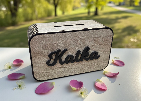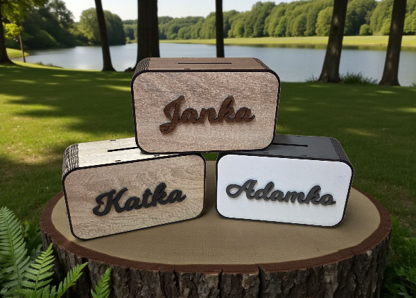 Drevená 3D pokladnička s menom alebo nápisom | Darček na mieru