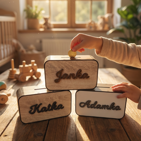✨ Originálna 3D pokladnička z dreva – krásny a osobný darček pre deti aj dospelých.
