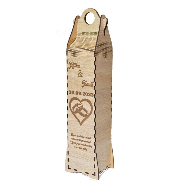 Obdarujte svojich blízkych darom, ktorý prekračuje obyčajnú obálku na víno. Naša drevená krabička na víno je dokonalým vyjadrením lásky, priateľstva a večnej spomienky na jeden z najdôležitejších dní v ich živote.