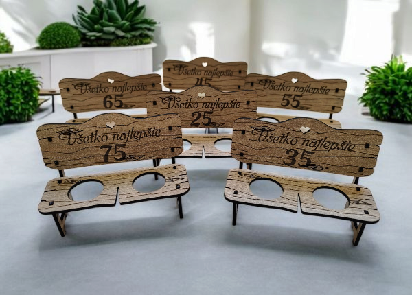 Drevená dekorácia v podobe štýlovej lavičky na štamprlíky je skvelým darčekom k narodeninám pre milovníkov dobrej nálady. Táto originálna sada na alkohol obsahuje drevenú lavičku s presne vyrezanými otvormi na štamprlíky, ktoré sú súčasťou balenia. Ideálny doplnok na oslavy a stretnutia s priateľmi, ktorý pridá štipku humoru a originality do každého prípitku.