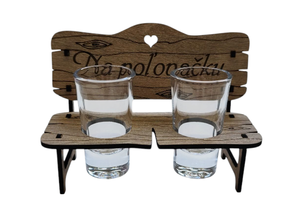 Drevená dekorácia v podobe štýlovej lavičky na štamprlíky je skvelým darčekom k narodeninám pre milovníkov dobrej nálady. Táto originálna sada na alkohol obsahuje drevenú lavičku s presne vyrezanými otvormi na štamprlíky, ktoré sú súčasťou balenia.