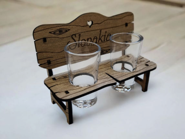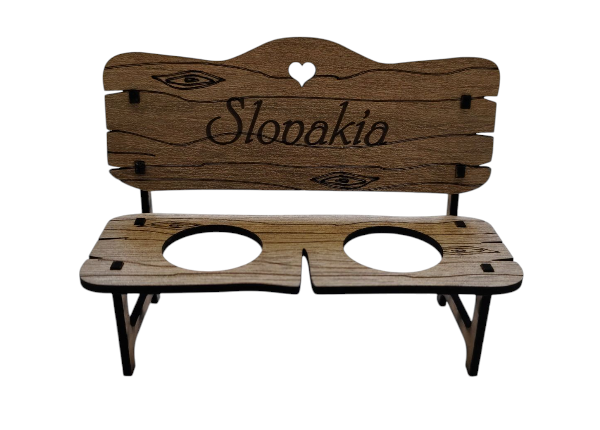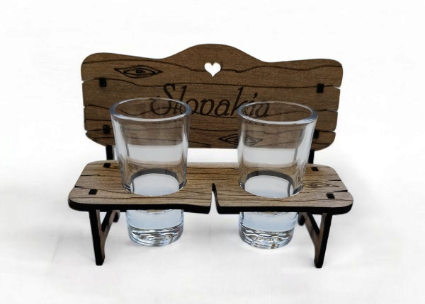 Drevená dekorácia v podobe štýlovej lavičky na štamprlíky je skvelým darčekom pre hrdého Slováka alebo ako suvenír. Táto originálna sada na alkohol obsahuje drevenú lavičku s presne vyrezanými otvormi na štamprlíky, ktoré sú súčasťou balenia. Ideálny doplnok na oslavy a stretnutia s priateľmi, ktorý pridá štipku humoru a originality do každého prípitku.