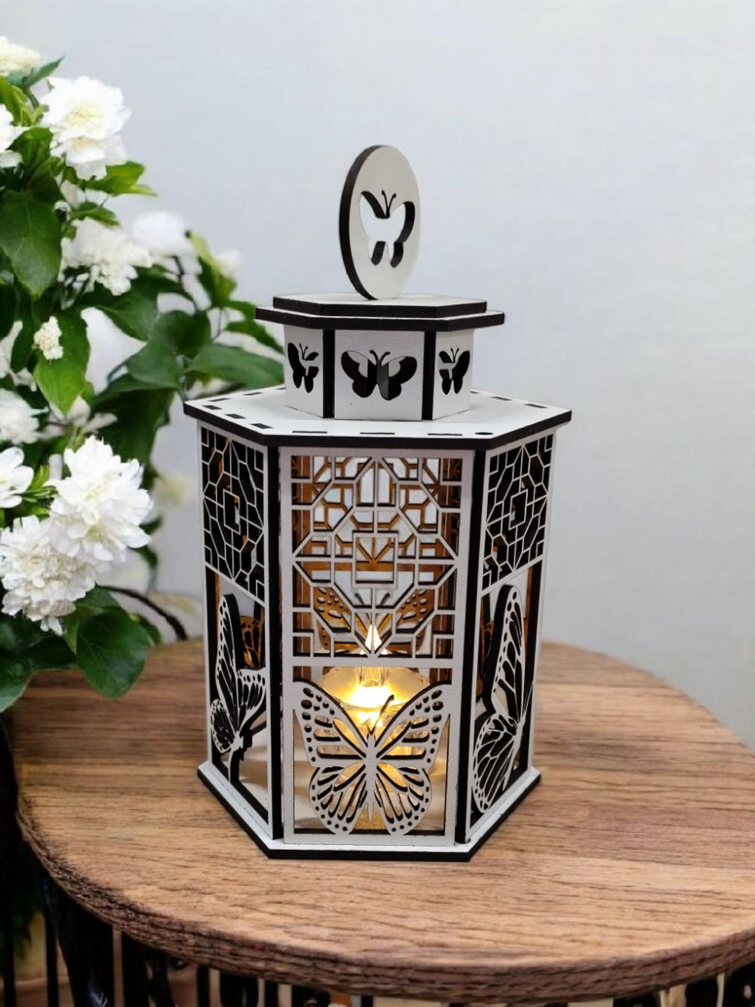 Táto drevená lucerna je dokonalým spojením prírodného materiálu a majestátnej krásy motýľov. Je vyrobená z kvalitného dreva a ponúka veľké množstvo dekorov dreva, vďaka čomu si môžete vybrať dizajn, ktorý dokonale ladí s vaším interiérom.