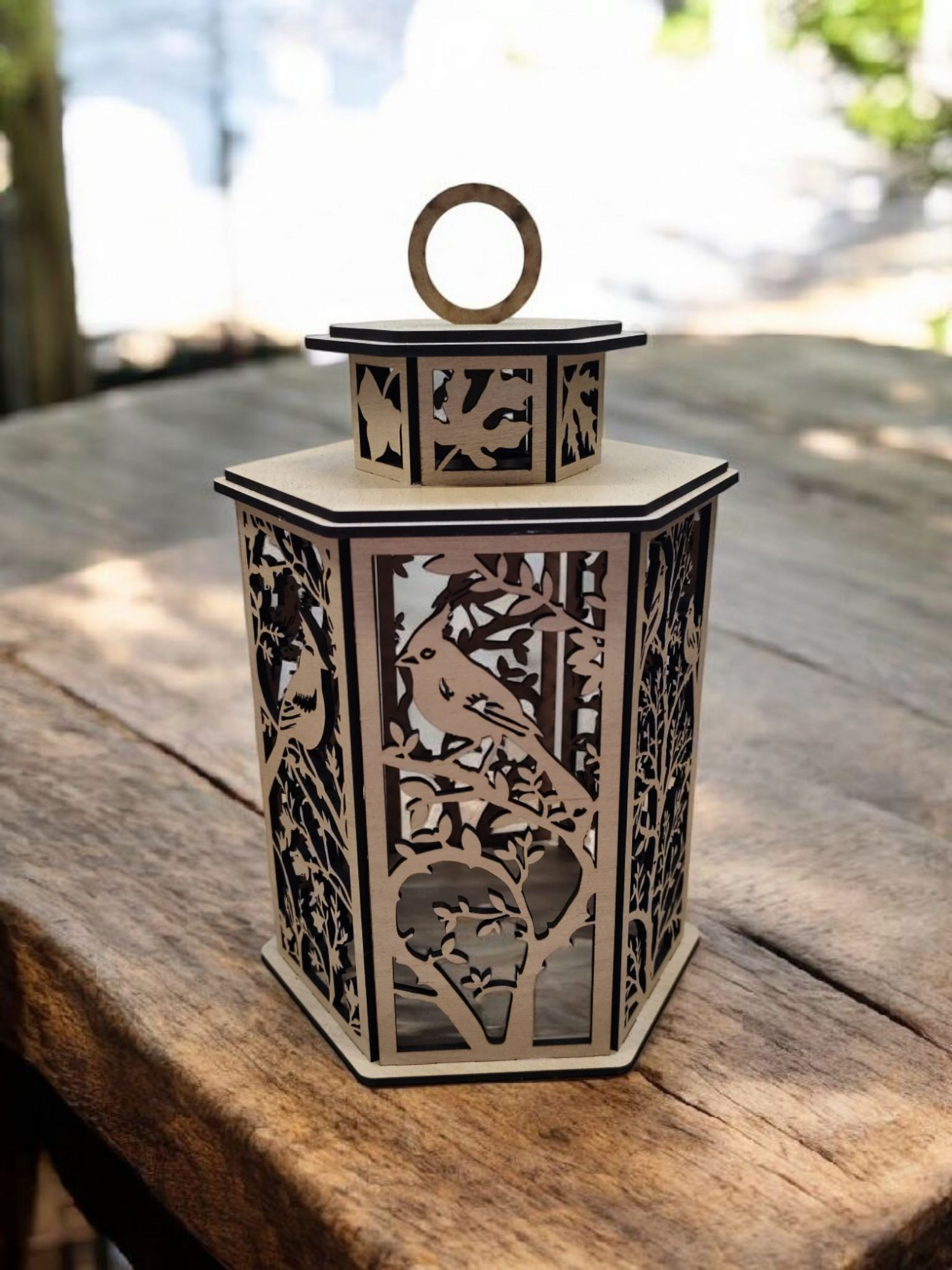 Táto drevená lucerna s jemným motívom vtáčikov je jedinečnou dekoráciou, ktorá vnesie do vášho domova prírodnú eleganciu a útulnú atmosféru. Vyrobená z kvalitného dreva, jej precízne spracovanie a detailné vyrezávanie dodávajú priestoru harmóniu a štýl.