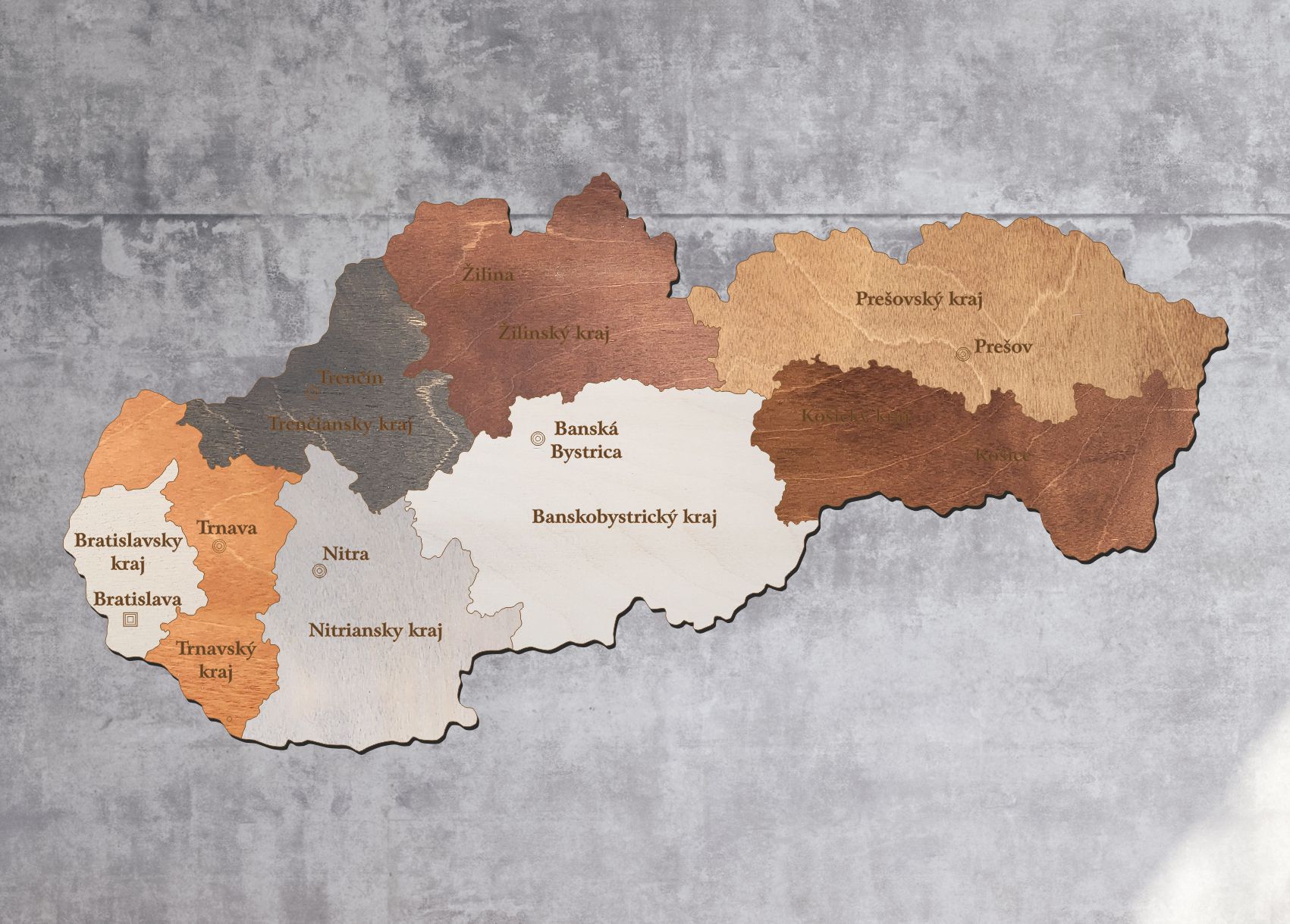 Drevená mapa Slovenska – Kraje
