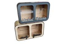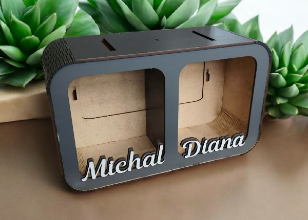 Táto drevená pokladnička je nielen praktickým úložným priestorom, ale aj jedinečnou dekoráciou do vášho domova. Vyrobená pre manželov, súrodencov, spolubývajúcich ktorí si môžu šetriť spolu ale zároveň každý zvlášť. Je vyrobená z kvalitného dreva, ponúka možnosť personalizácie – môžete si vybrať mená, ktoré bude zdobiť jej povrch. Vďaka precíznemu spracovaniu a elegantnému dizajnu sa skvele hodí do každej domácnosti.