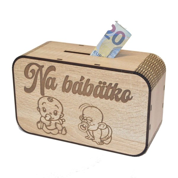 Drevená pokladnička s nápisom - Na bábätko
