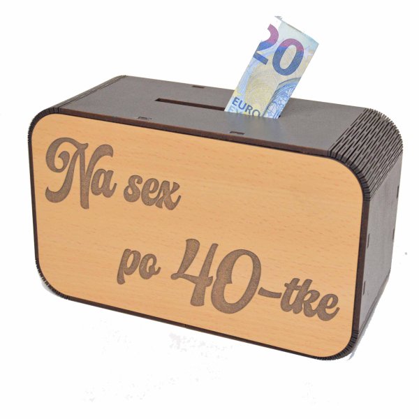 Drevená pokladnička s nápisom - Na sex po 40-tke