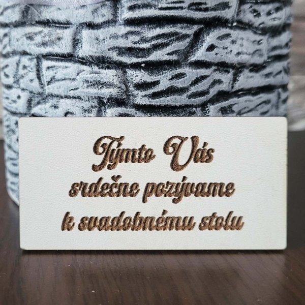 Zachyťte kúzlo svojho veľkého dňa už od prvého momentu s našimi exkluzívnymi drevenými pozvánkami k svadobnému stolu. Každá pozvánka je majstrovským dielom, ktoré pridá osobitý šarm a eleganciu k vašej svadbe. Naše drevené pozvánky sú nielen neobyčajným spôsobom, ako oznámiť dôležité detaily, ale tiež skvelým spomienkovým darčekom pre vašich hostí, ktorý im zostane na pamiatku.