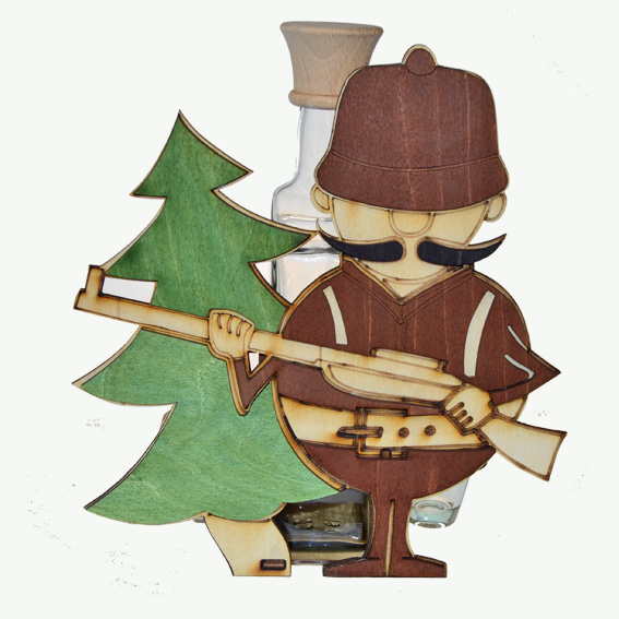 Drevená súprava fľaša so štamperlíkmi - Poľovník