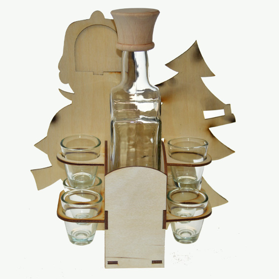 Drevená súprava fľaša so štamperlíkmi - Poľovník