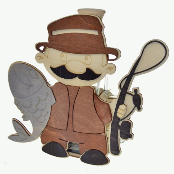 Drevená súprava fľaša so štamperlíkmi - Rybár
