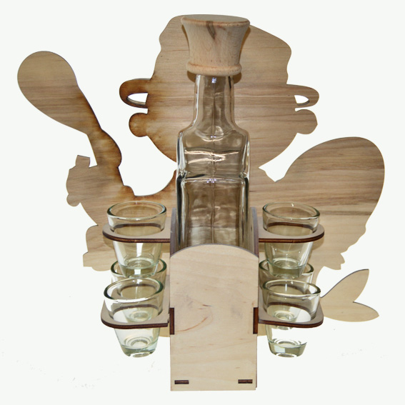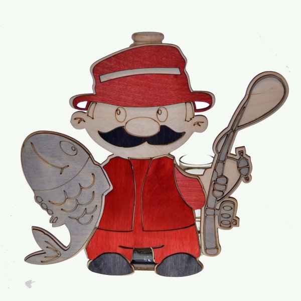 Drevená súprava fľaša so štamperlíkmi - Rybár