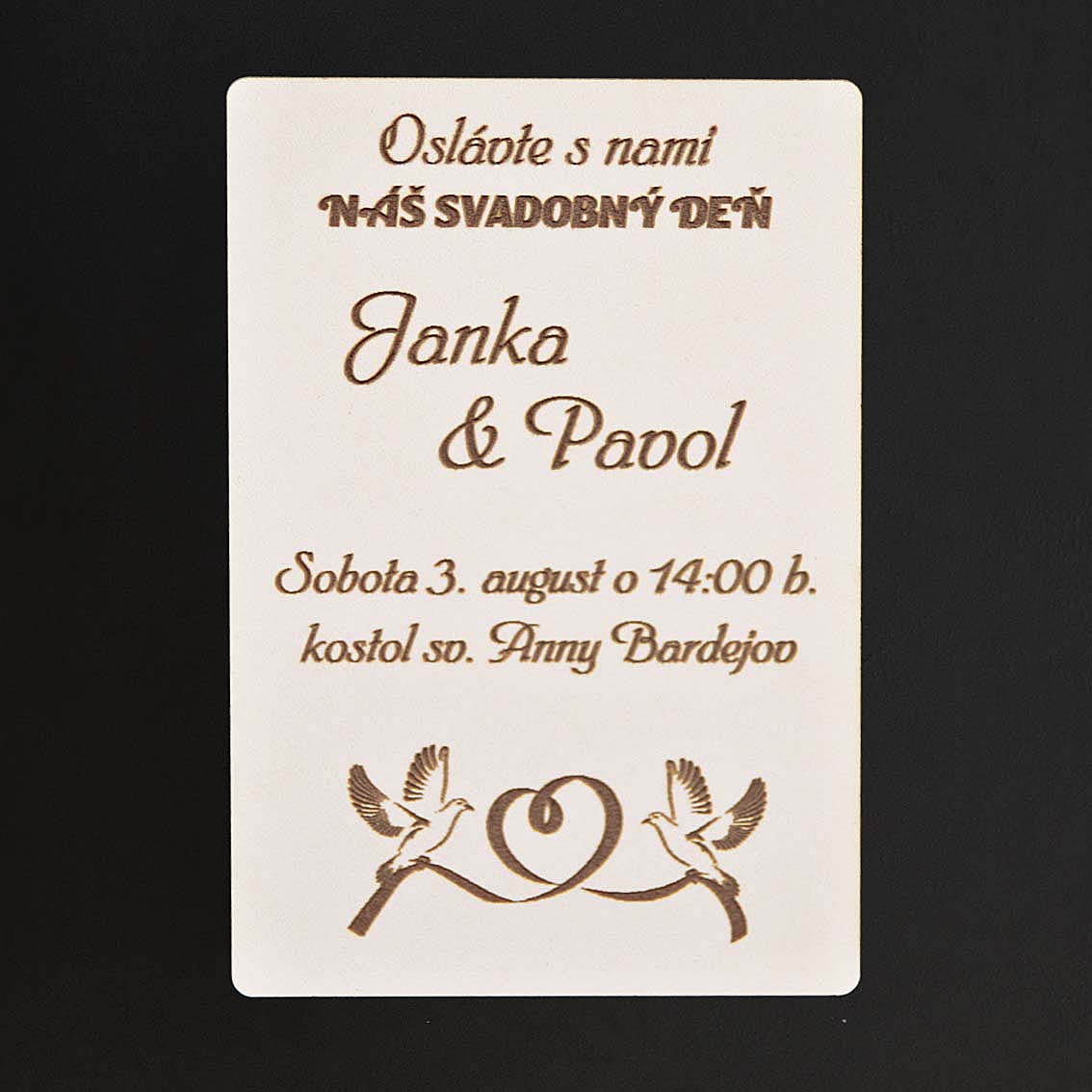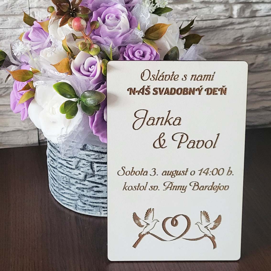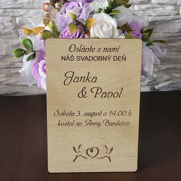 Objavte kúzlo prvej impresie so svojou unikátnou drevenou svadobnou pozvánkou! Spoľahnite sa na originálnosť a kvalitu, ktoré určite zaujmú a zvýraznia jedinečnosť vášho veľkého dňa. Kombinácia prírodných materiálov a osobného dotyku dodá vašej udalosti exkluzívny charakter.