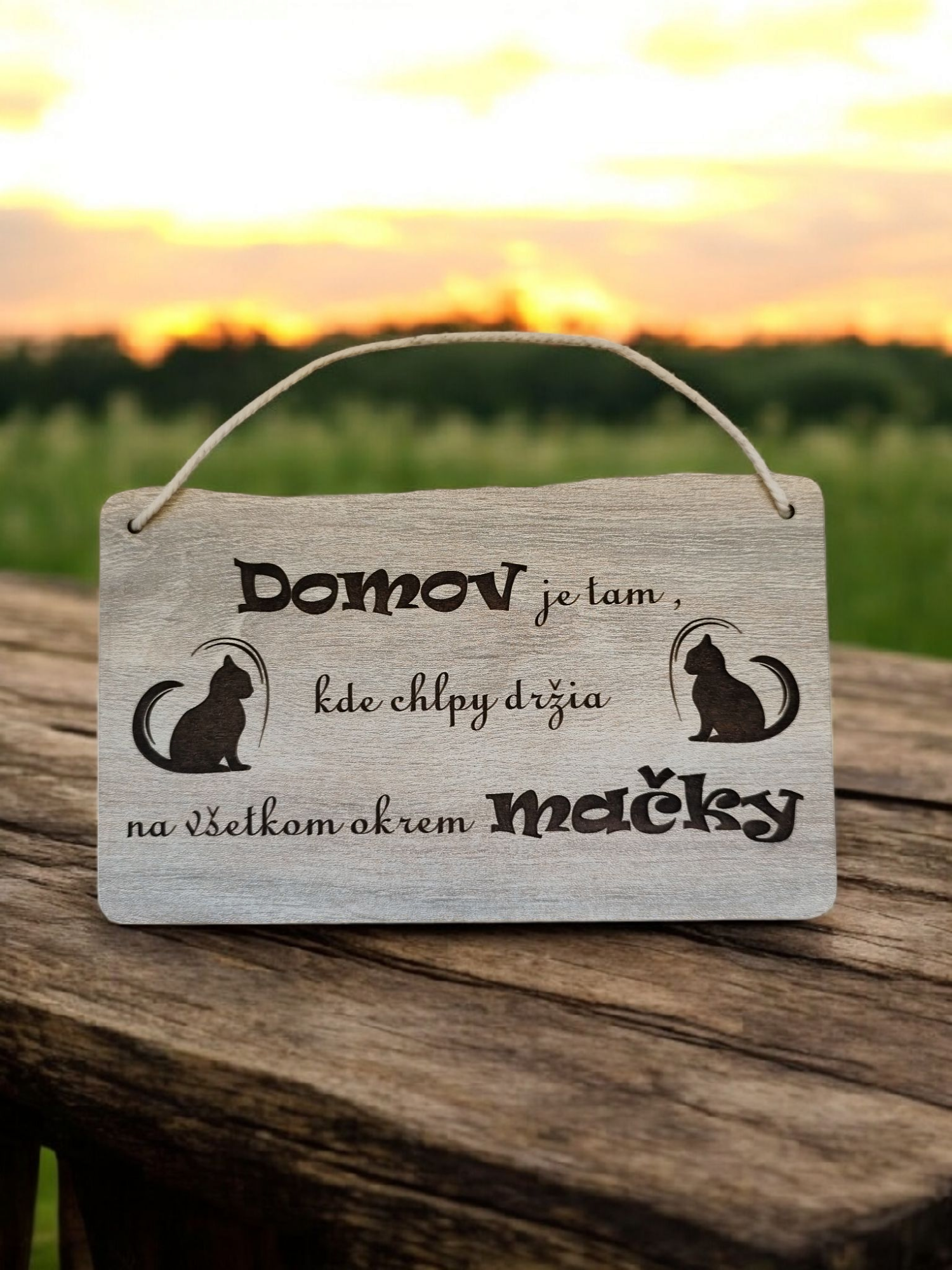 **Drevená tabuľka - Domov mačky: Perfektný darček pre milovníkov mačiek, ktorý rozosmeje a pohladí dušu!**