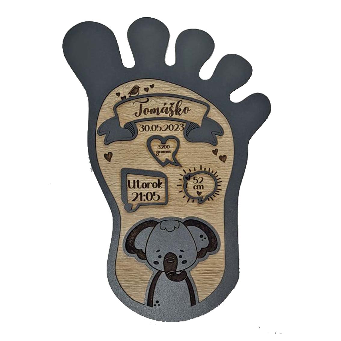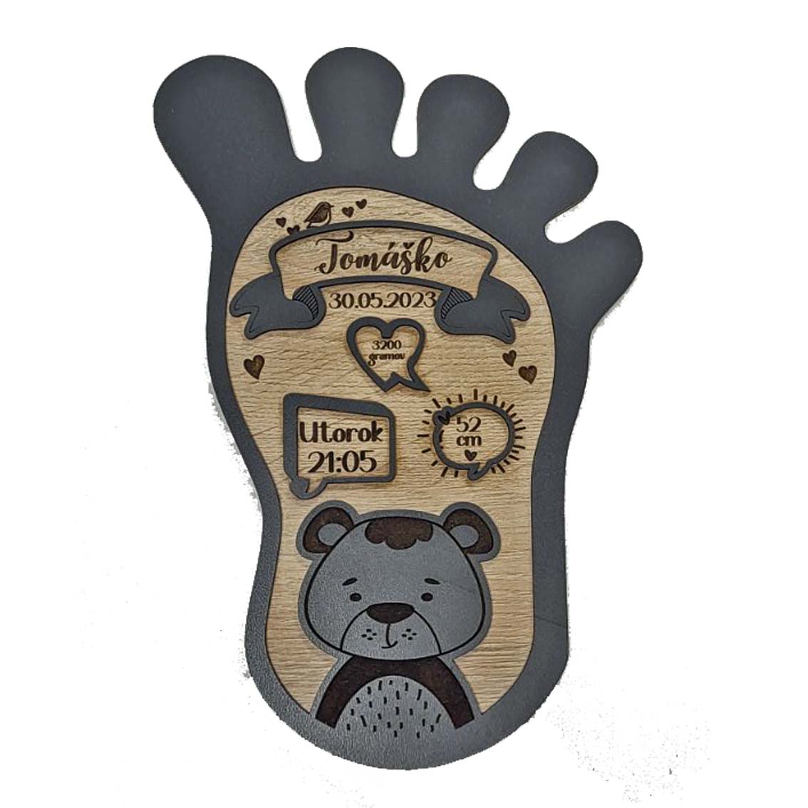 Predstavujeme vám unikátnu drevenú tabuľku k narodeniu novorodenca - dokonalý darček, ktorý zachytí a uchová vzácne spomienky na jeden z najdôležitejších okamihov vášho života.