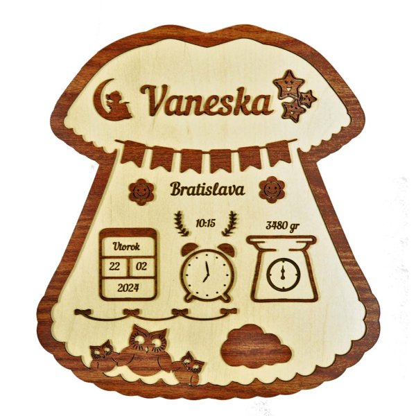 Predstavujeme vám jedinečný a neopakovateľný darček pre novopečených rodičov - Drevenú tabuľku k narodeniu novorodenca. Táto tabuľka je dokonalým spôsobom, ako uchovať spomienku na jeden z najdôležitejších okamihov v živote rodiny.