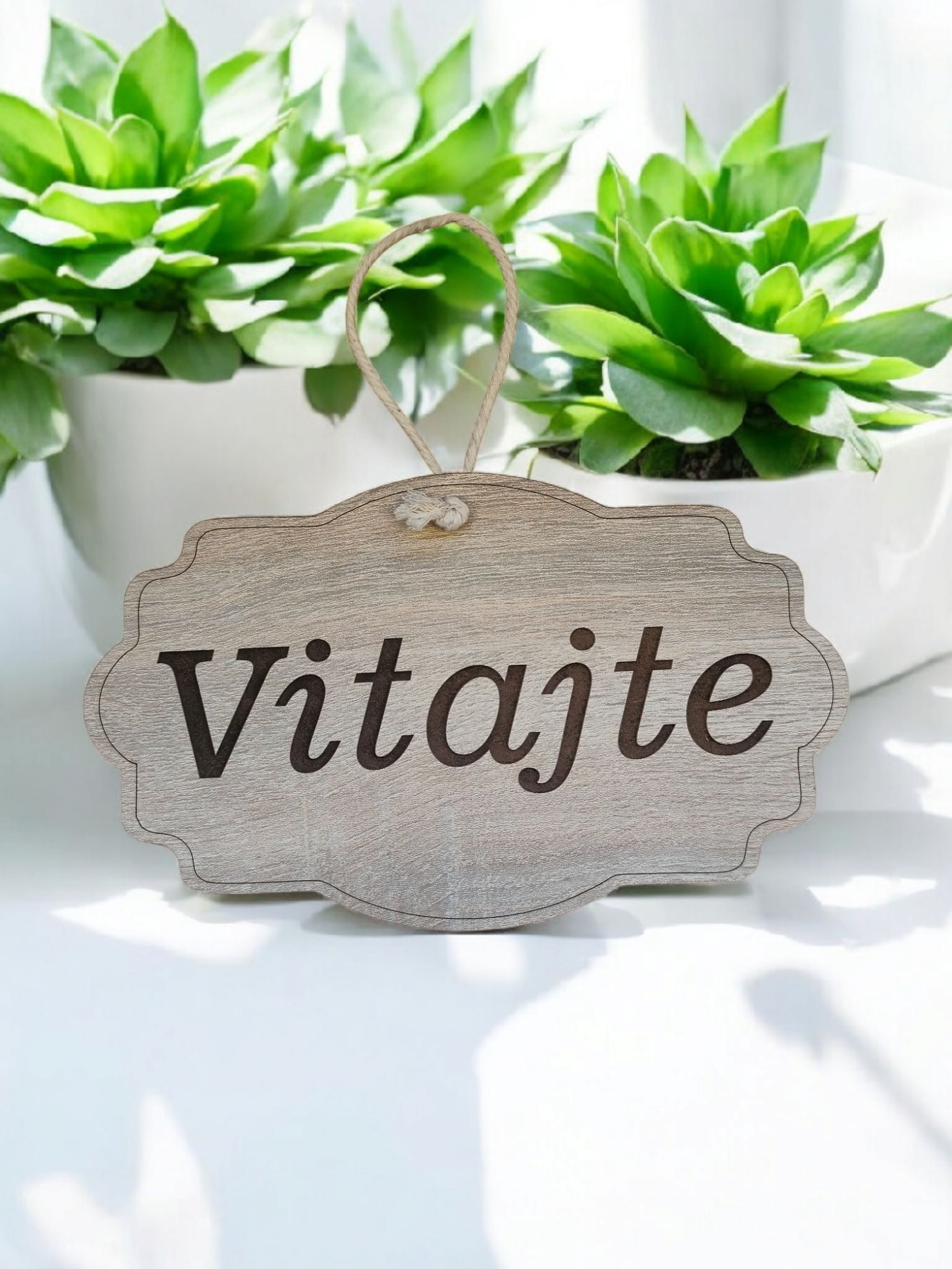 Privítajte hostí štýlovo s našou drevenou tabuľkou "Vitajte", ktorá dodá vášmu domovu osobitý charakter. Táto krásna drevená tabuľa na zavesenie je vyrobená z kvalitného HDF dreva, ktoré zaručuje jej trvácnosť a elegantný vzhľad.