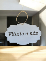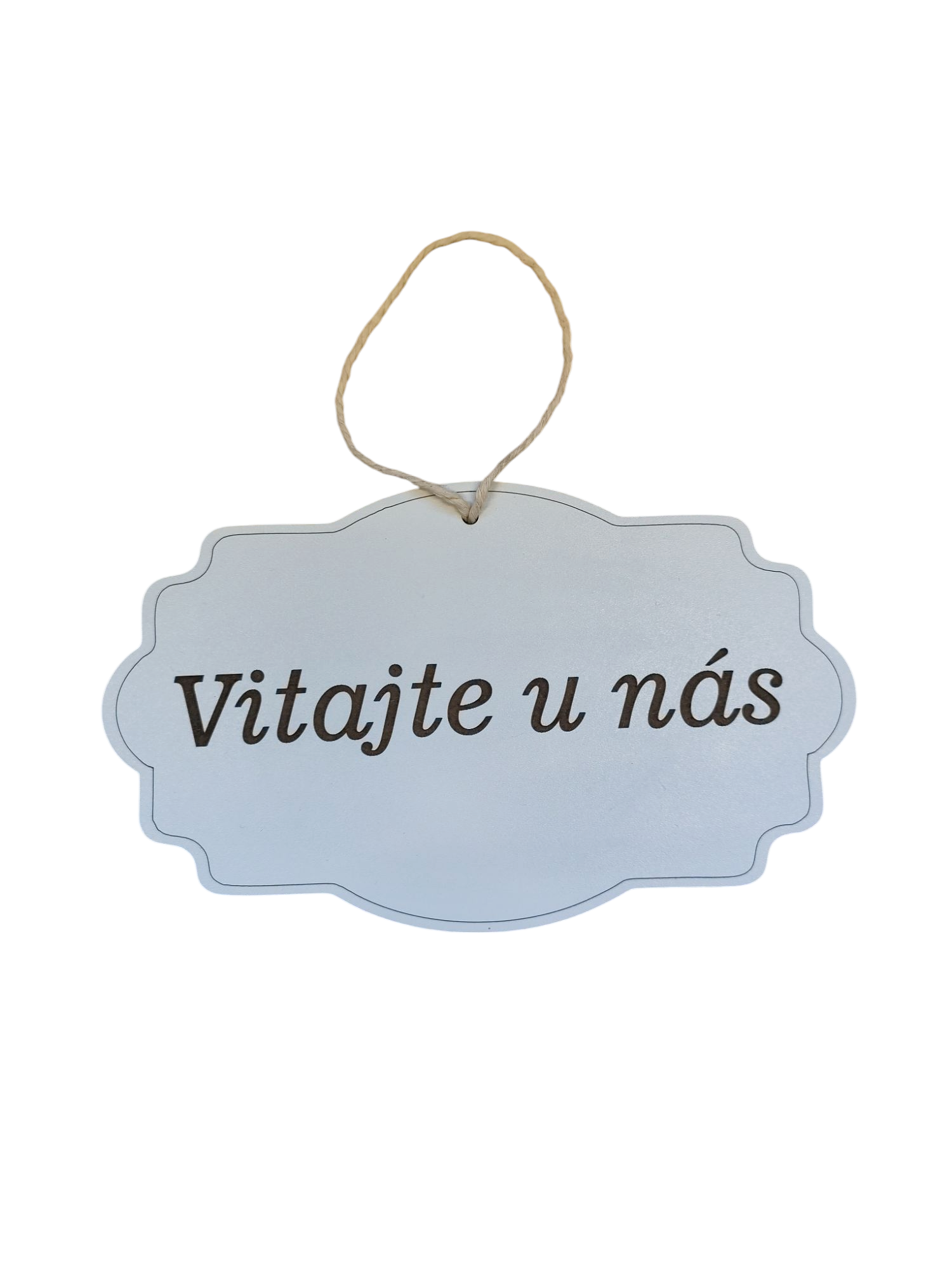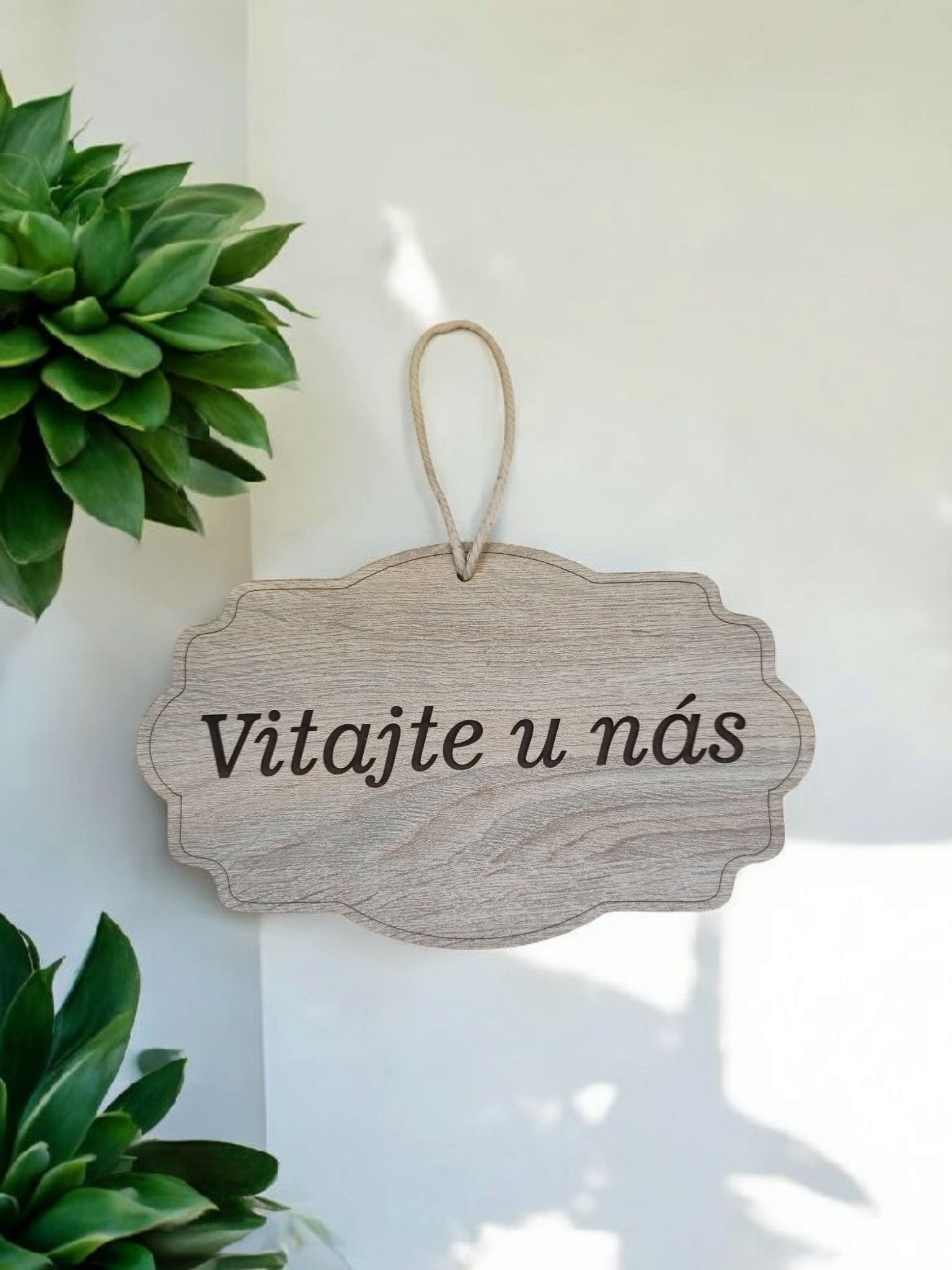 Privítajte hostí štýlovo s našou drevenou tabuľkou "Vitajte u nás", ktorá dodá vášmu domovu osobitý charakter. Táto krásna drevená tabuľa na zavesenie je vyrobená z kvalitného HDF dreva, ktoré zaručuje jej trvácnosť a elegantný vzhľad.