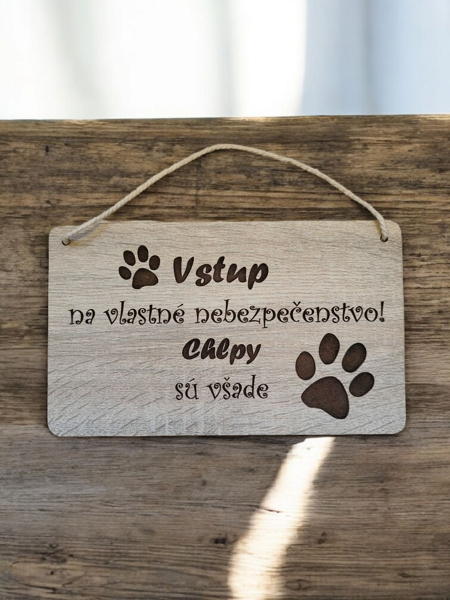 Ideálna na umiestnenie na vchodové dvere, bránku alebo do vstupnej chodby. Dokonale poslúži aj ako tabuľka pre chovateľov psov , upozorňujúca vtipným nápisom návštevníkov na prítomnosť vašich štvornohých miláčikov. Pozrite si aj naše ďalšie drevené tabuľky s motívmi zvierat, ktoré krásne doplnia váš domov.