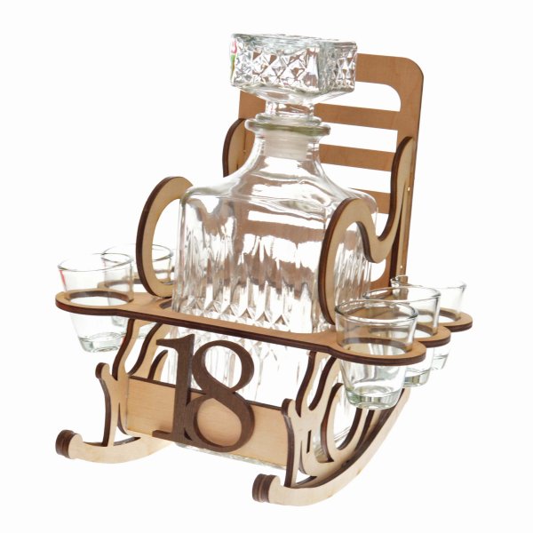 🪵 Kresielko je vyrobené z dreva a dostupné v dvoch dekoroch – prírodné svetlé alebo tmavé rustikálne prevedenie. V zadnej časti kresla je priamo vložená fľaša, ideálna na pálenku, likér či inú obľúbenú dobrotu. Po bokoch sa nachádza 6 štamperlíkov – všetko pripravené na prípitok.