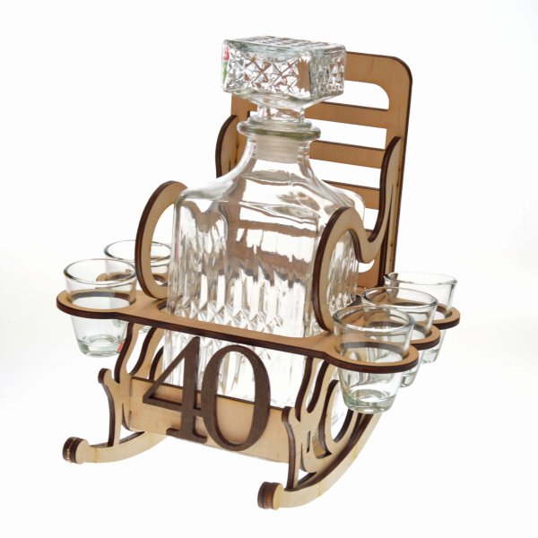 🪵 Kresielko je vyrobené z dreva a dostupné v dvoch dekoroch – prírodné svetlé alebo tmavé rustikálne prevedenie. V zadnej časti kresla je priamo vložená fľaša, ideálna na pálenku, likér či inú obľúbenú dobrotu. Po bokoch sa nachádza 6 štamperlíkov – všetko pripravené na prípitok.