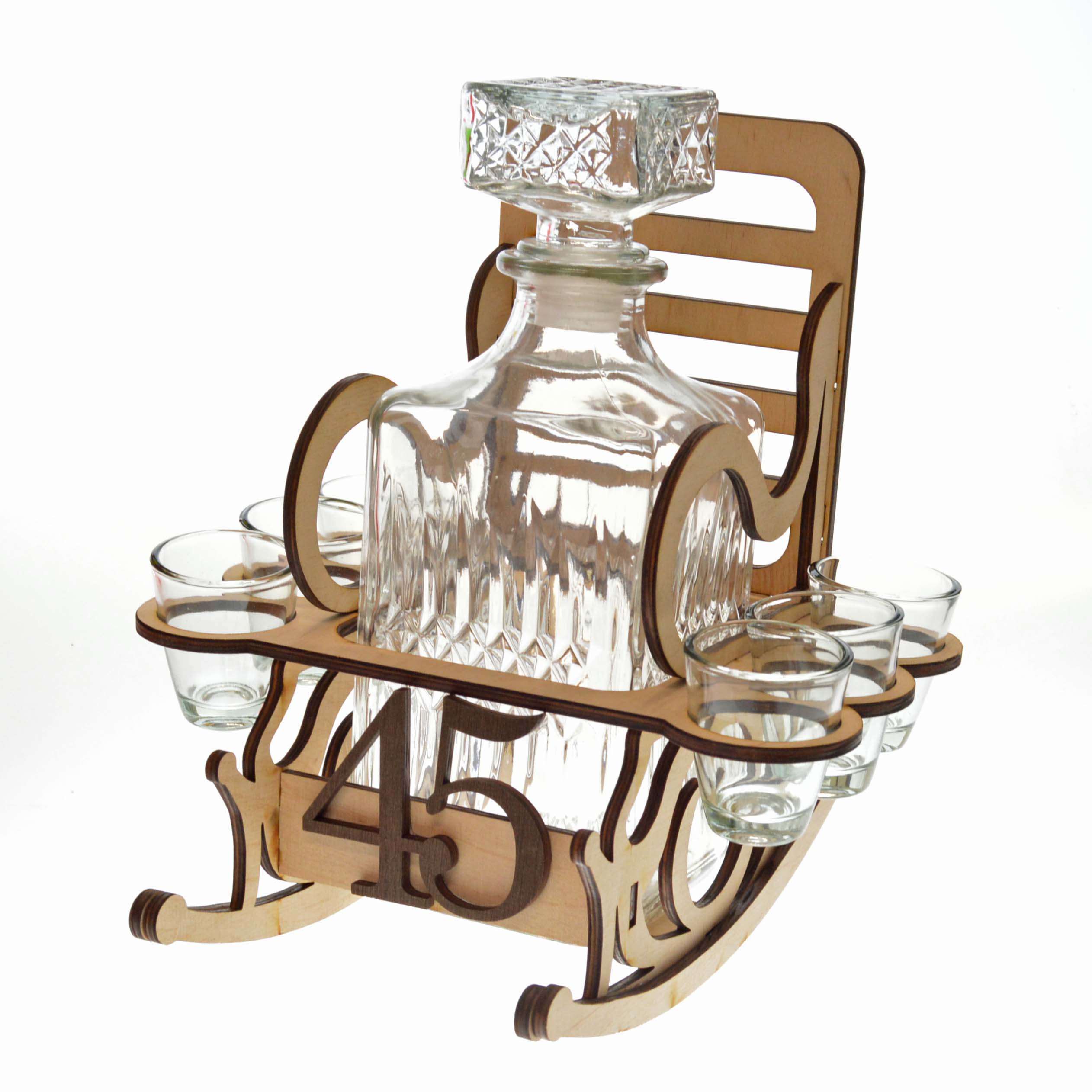🪵 Kresielko je vyrobené z dreva a dostupné v dvoch dekoroch – prírodné svetlé alebo tmavé rustikálne prevedenie. V zadnej časti kresla je priamo vložená fľaša, ideálna na pálenku, likér či inú obľúbenú dobrotu. Po bokoch sa nachádza 6 štamperlíkov – všetko pripravené na prípitok.