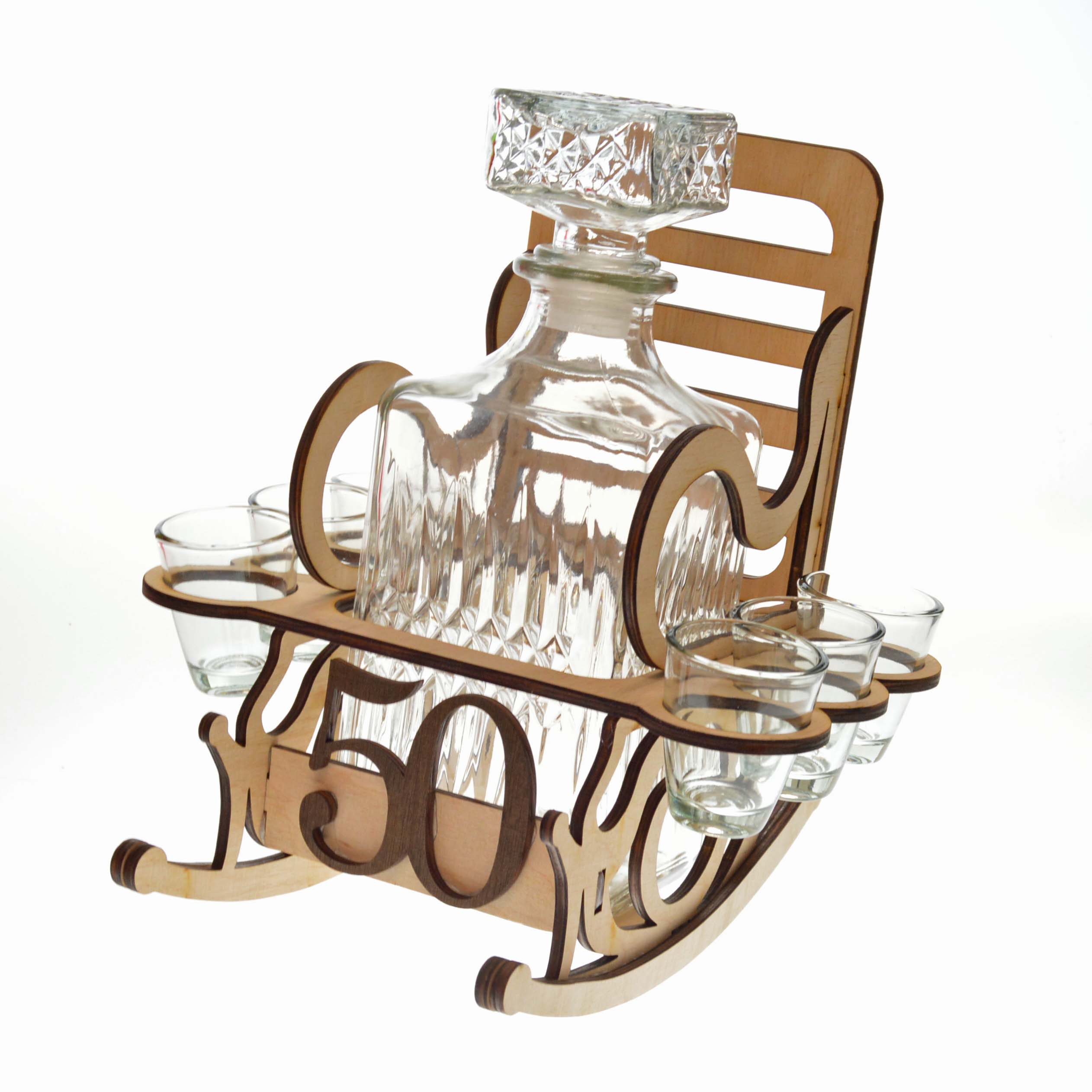 🪵 Kresielko je vyrobené z dreva a dostupné v dvoch dekoroch – prírodné svetlé alebo tmavé rustikálne prevedenie. V zadnej časti kresla je priamo vložená fľaša, ideálna na pálenku, likér či inú obľúbenú dobrotu. Po bokoch sa nachádza 6 štamperlíkov – všetko pripravené na prípitok.