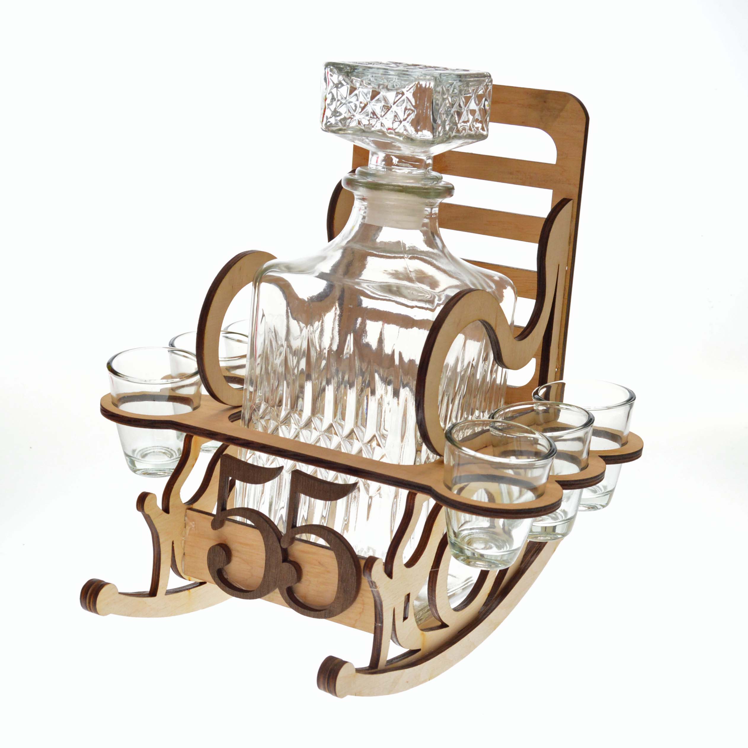 Drevené kreslo s fľaškou k 55. narodeninám