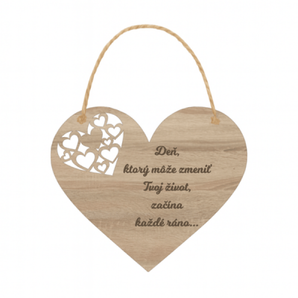 🌞 Drevené srdce – Deň, ktorý môže zmeniť tvoj život pripomína, že každý nový deň prináša možnosť začať znova. Na srdiečku z kvalitného HDF dreva (3 mm) je vygravírovaný citát: