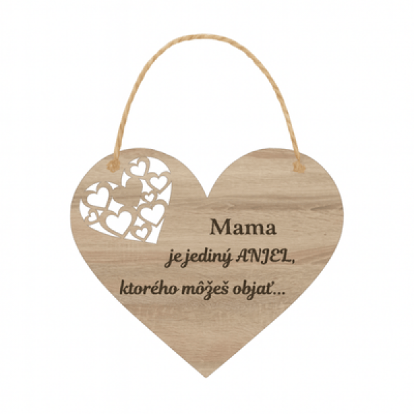 💝 Drevené srdce – Mama je jediný anjel, ktorého môžeš objať je dojímavá dekorácia plná vďaky a lásky. Vyrobené z kvalitného HDF dreva (3 mm) s jemným gravírovaným textom, ktorý vyjadruje to, čo slová často nestačia povedať.