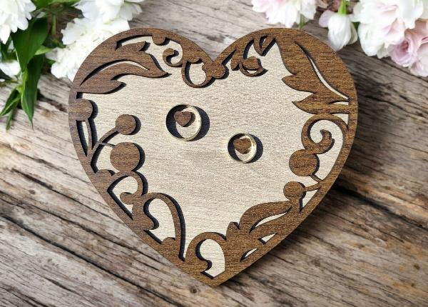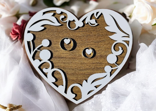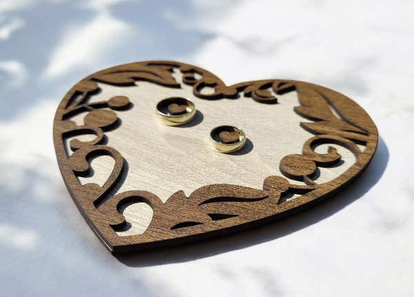 Drevené srdce na svadobné obrúčky – romantický detail pre váš veľký deň